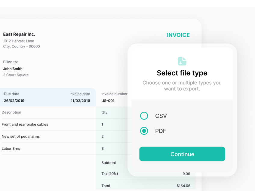 Export your expenses as CSV or PDF anytime. Organized by date, vendor, and category, ready for your accountant or for your own records.